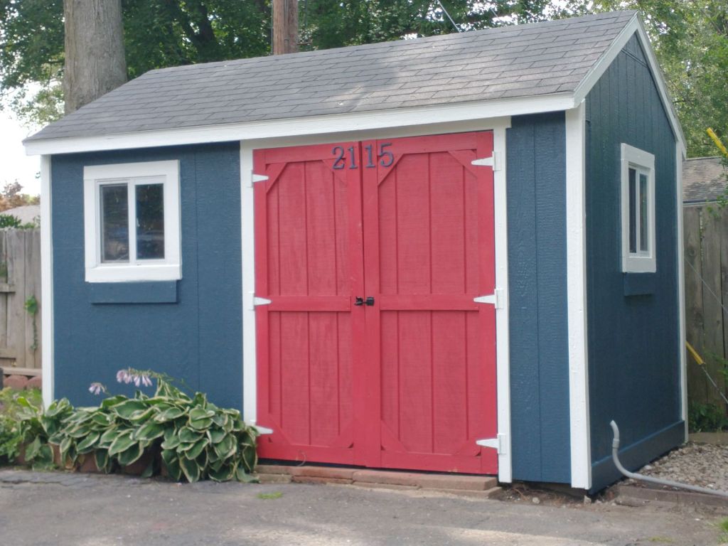Red, white, and blue refresh for this shed that serves as a colorful backdrop for lots of patio parties!