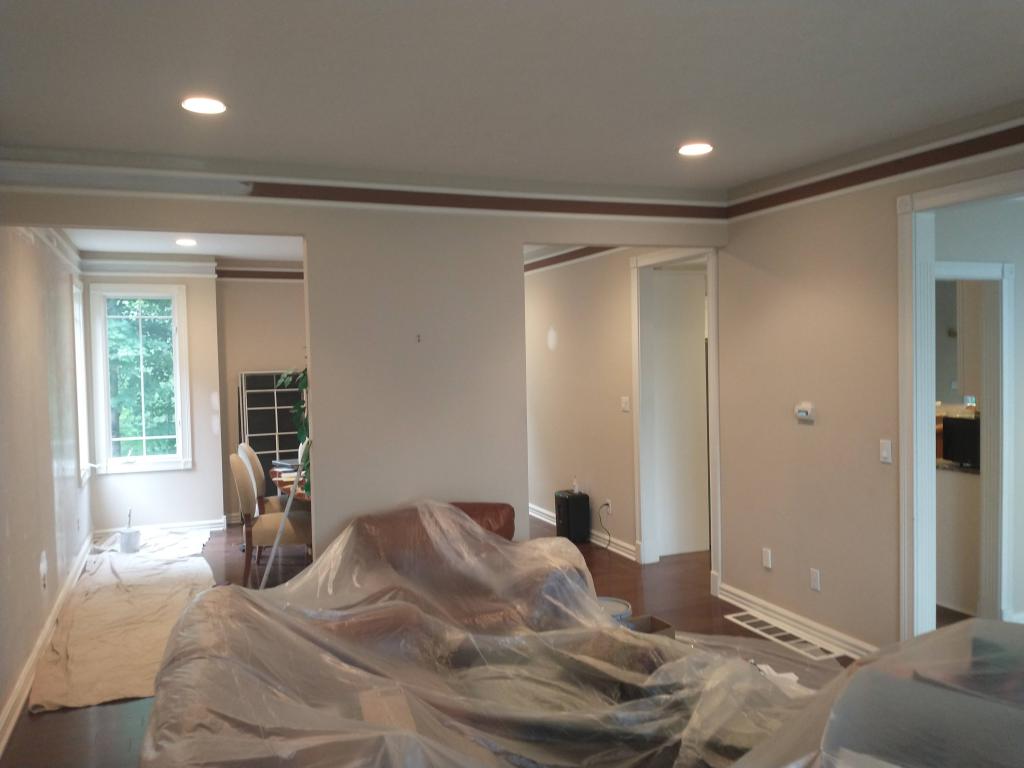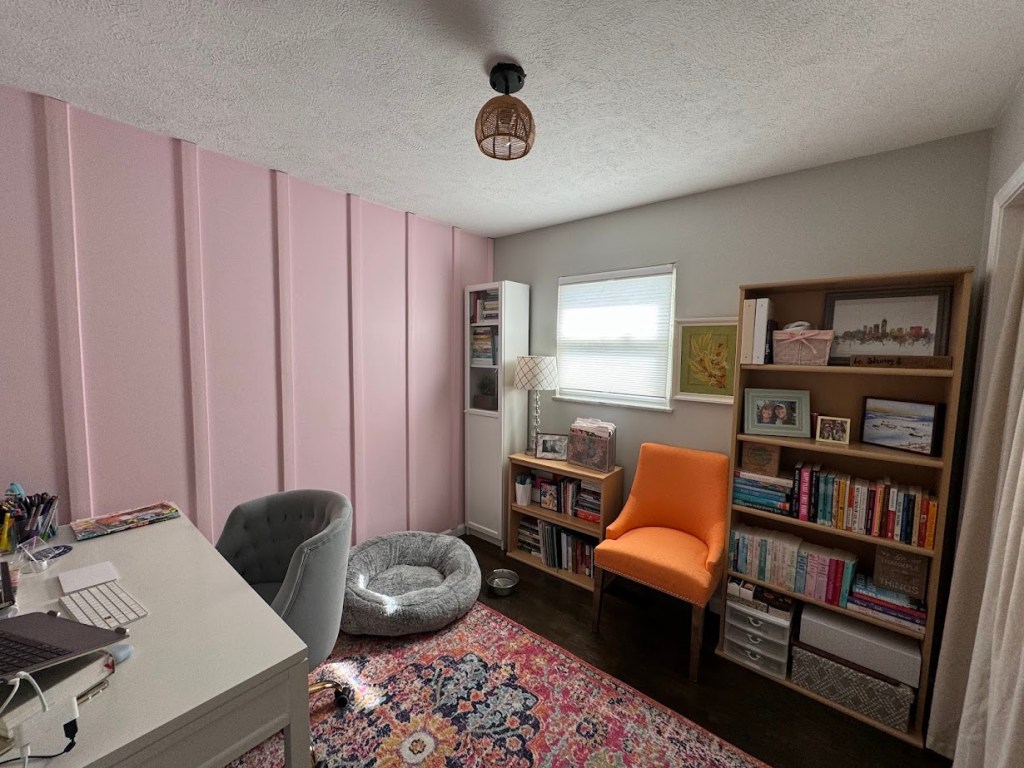 Had the opportunity to freshly paint the entire house of a new homeowner – ceiling, walls and all – including a pink accent wall in her office. She shared these pictures of the home beautifully decorated.