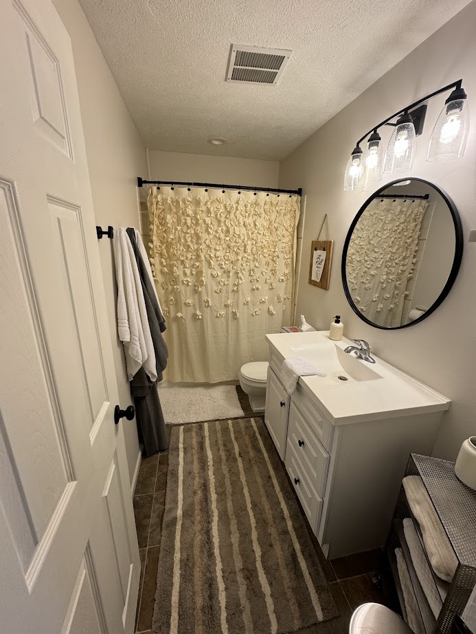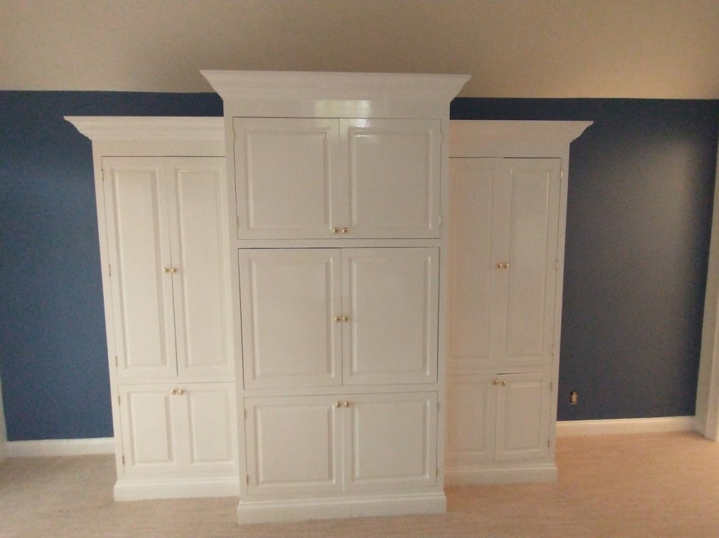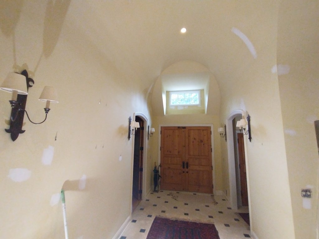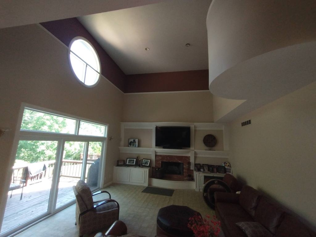 This homeowner wanted to update his home with clean, white cabinets and walls with blue accents on the ceiling. I love the way the oil-based paint on the cabinets shines and accents the door pulls. Pictures don’t do it justice. The home feels like it received a breath of fresh air.